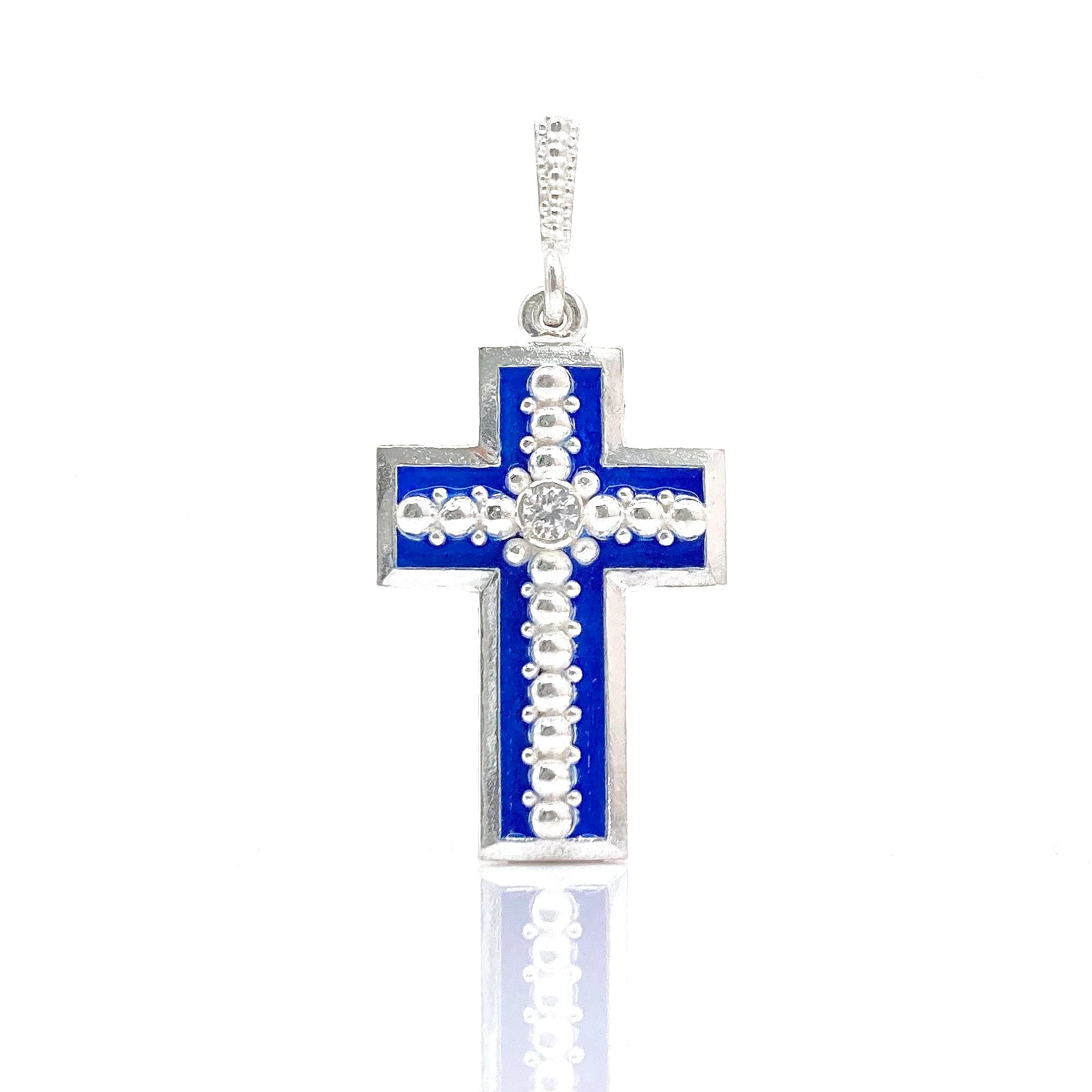 ვერცხლის ჯვარი მინანქრით ცვარა A450701